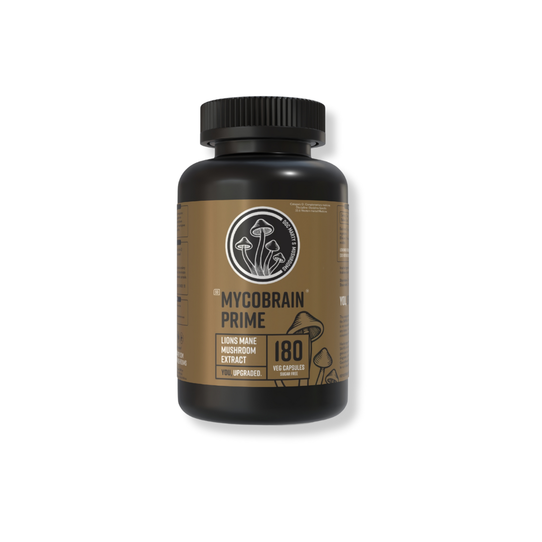 MycoBrain Prime offers advanced support for cognitive clarity, memory, focus, and immune resilience — crafted for those seeking a comprehensive, full-spectrum Lion’s Mane supplement.